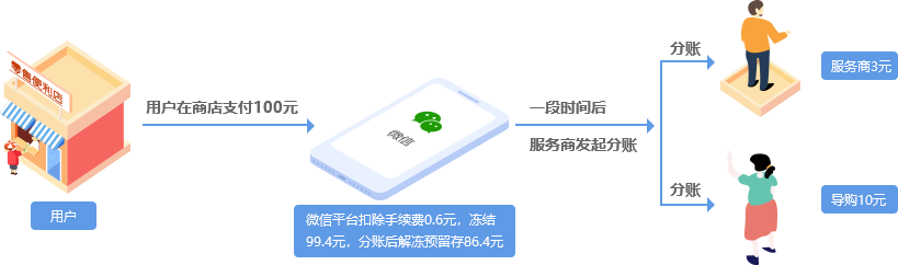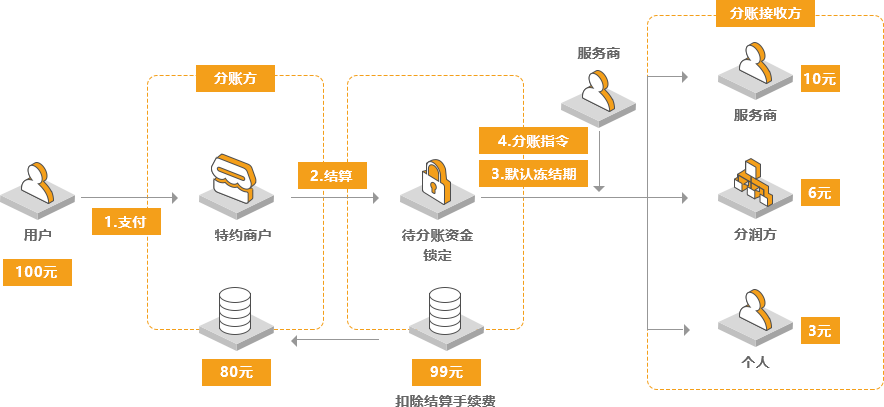 分账方:指商品或者服务的提供方,加入快接即可成为快接的特约商户;