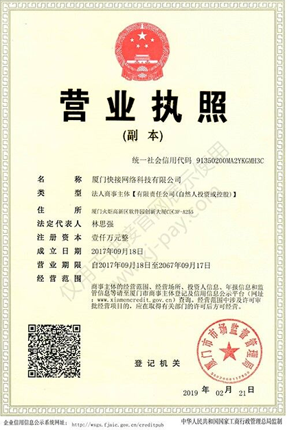 2019年四川易贝宝网络科技有限公司被评为“厦门市市级高新技术企业”优秀奖项;